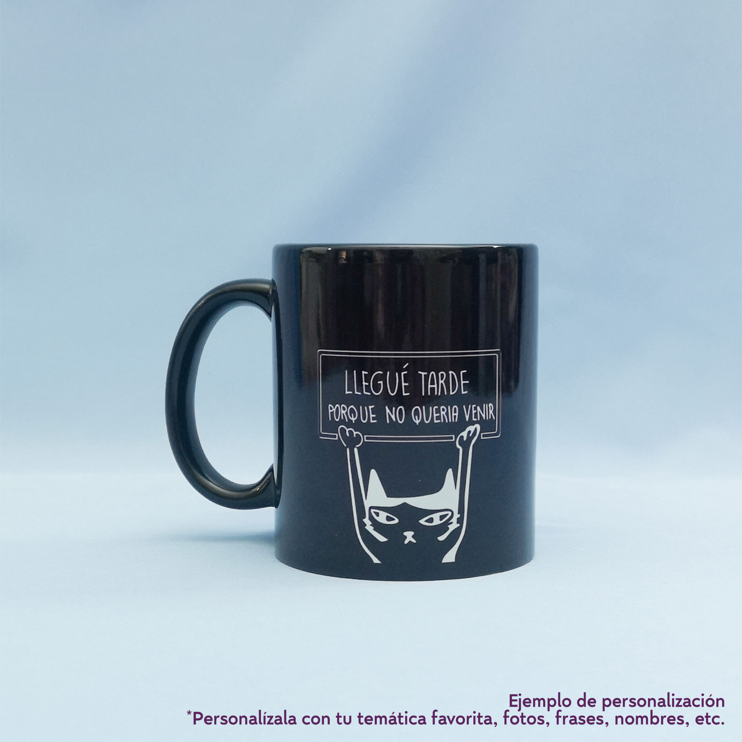 Sumérgete en el estilo minimalista con nuestra taza full color negro. Perfecta para cualquier ocasión, esta taza ofrece la posibilidad de personalizarse con cualquier temática, ya sea un diseño único, un mensaje especial o tu idea favorita. Versátil y moderna, es ideal para quienes buscan una taza que combine con cualquier ambiente y, al mismo tiempo, refleje su personalidad. ¡Hazla tuya y lleva tus ideas a la vida con un diseño totalmente personalizado!